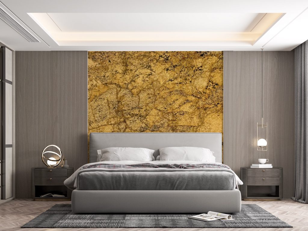 Alaska Gold Granite’s warm and luxurious hues make it perfect for interior focal points, such as kitchen countertops, backsplashes, and accent walls. Its intricate patterns suit high-end homes, adding depth and richness to spaces. In commercial settings like hotel lobbies and upscale restaurants, it elevates ambiance, creating an inviting, opulent feel.